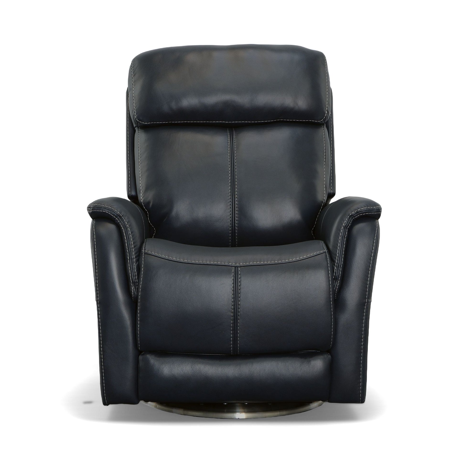 Enjoy an extensive range of motion in a chair that looks as good as it feels with the MOV 360 View recliner. Whether you are gaming, chatting or watching a movie, you can stay active as you sit with help from a swivel that rotates a full 360 degrees. Pad-over arms are paired with a divided backrest for head and lower back support, while an extended footrest accommodates taller users. Flexsteel's patented Blue Steel Spring™ seat system provides long-lasting seat support that you can count on. Move seamlessly from sitting to fully reclined with a power button that allows you to customize your comfort. Upholstered in a premium, taupe leather with a welt trim and heavy thread top-stitching for a refined look, View is sure to make a statement in your home.