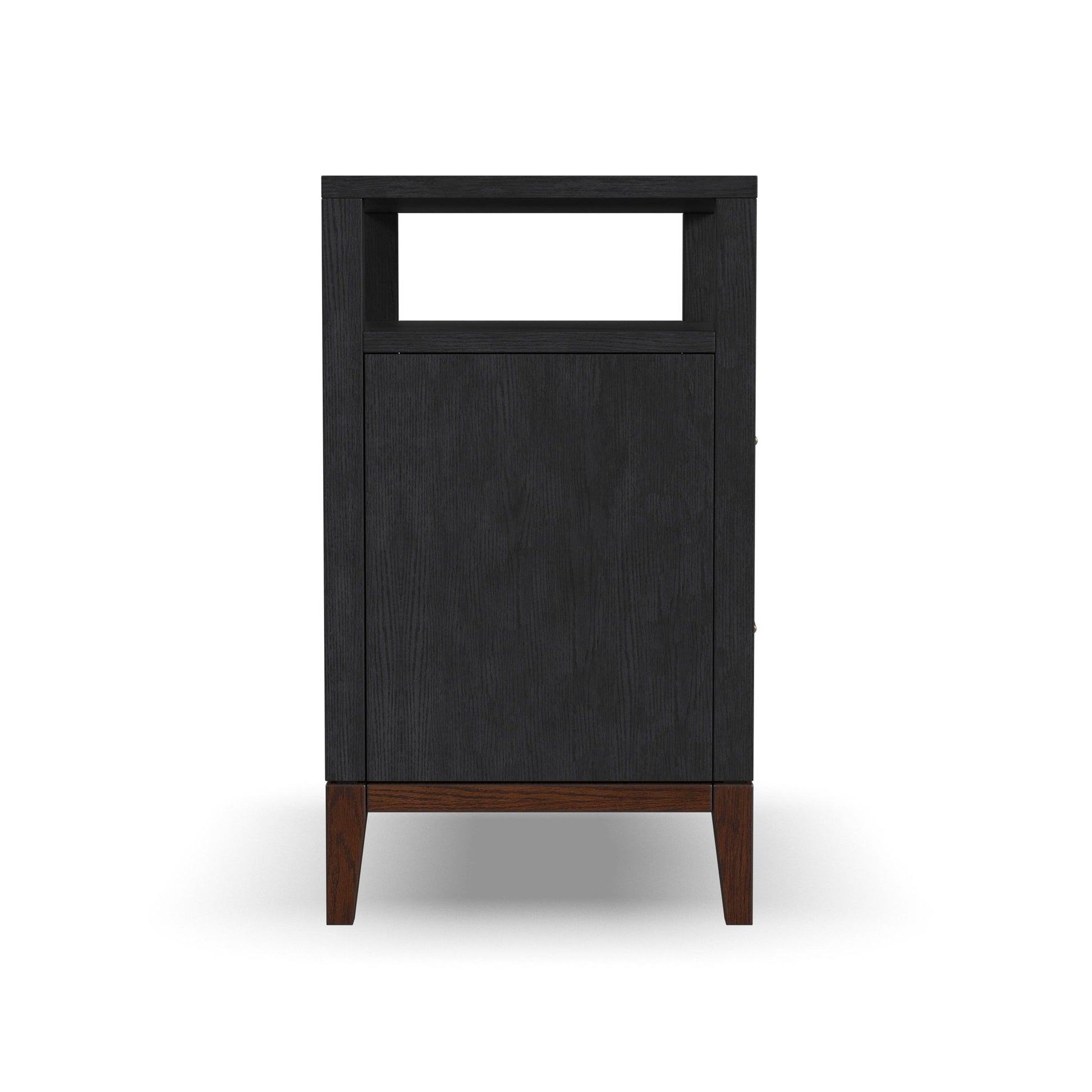 Add effortless style and architectural appeal to your living room with the Waterfall round end table. This striking table features a timeless silhouette defined by clean lines and simple geometric shapes, including a substantial sculptural crisscross base that supports the top. Group and nest this table with the coordinating Waterfall round coffee table for added visual interest and function. The Waterfall round end table is well-crafted from solid rubberwood with oak veneers and features a deep ebony finish for lasting beauty.
