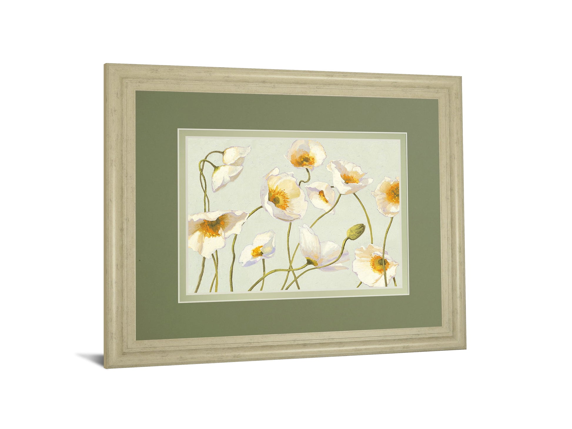Floral Harmony invites you into a serene world where delicate blooms sway gently against a soft, muted backdrop. This mixed media piece blends subtle ivory, green, and warm golden hues, capturing the quiet elegance of nature’s fleeting moments. Enhanced by a sophisticated double mat and a refined ivory frame, it offers a tranquil focal point that complements living rooms, bedrooms, or office spaces, bringing a peaceful garden ambiance indoors with timeless style and grace.